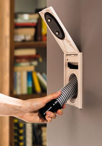 Une seule prise centrée par niveau vous suffit pour passer l'aspirateur. Utilisez le flexible à la longueur souhaitée (Si vous souhaitez sortir 5 mètres de flexible uniquement, c'est possible) et une fois votre nettoyage terminé, avec la force d'aspiration le système aspire le flexible dans le réseau.